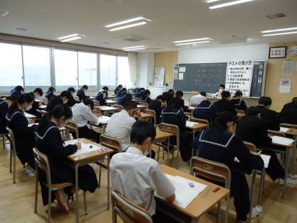 緊張感が漂う中、紙面に向かい、集中して取り組んでいました。