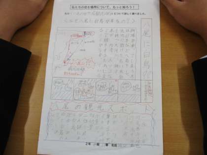 4月12日(水) 2年生 総合的な学習の時間 「八尾町の魅力を伝えよう」 その1 公開日 2023/04/12 更新日 2023/04/12 八尾中学校のページ 八尾町の中で、興味をもったことについて調べ、レポートにまとめたものを班、クラスで発表をしました。 おわら、玉天、曳山、、、様々な視点から調べています。 2年4組のプレゼンテーションの様子です。
