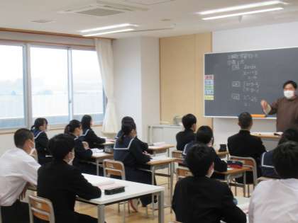 写真は、3年3組の数学の授業の様子です。3年生の数学は、2クラスに分かれて、少人数指導で授業を行います。