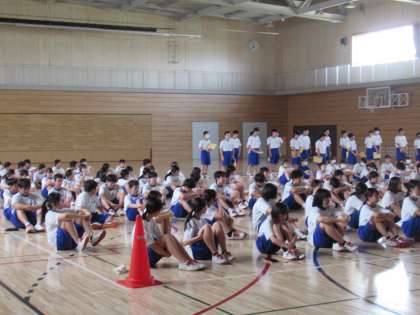 2年生全員で保健体育の授業を行いました。