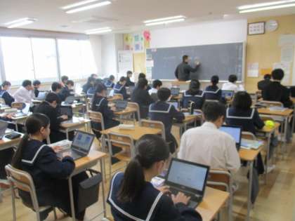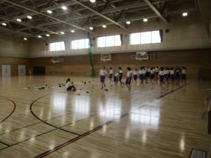 2年3組は技術、2年4組は体育に取り組んでいます。
