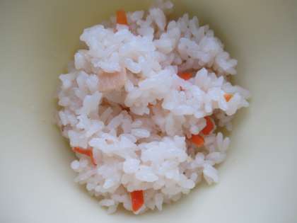 すまし汁の中に、桜の形の人参が入っていますよ。調理員さんのご配慮です。感謝感謝。