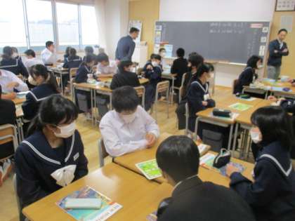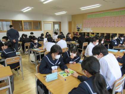 2年4組は英語ですごろくゲームをしています。楽しみながら復習しています。