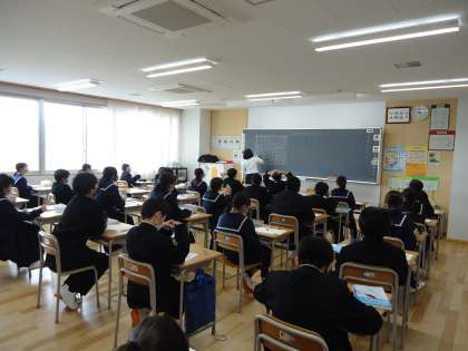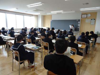 上から順に、1年1組、2組保健体育、3組英語、4組数学の授業の様子です。