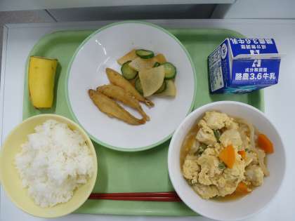 厚揚げは、豆腐から作られるので、体を大きくするタンパク質や、骨や歯を強くするカルシウムがたくさん含まれています。今日も栄養価満点の献立です。栄養たっぷりの給食を残さず食べて、強い心と体をつくりましょう。