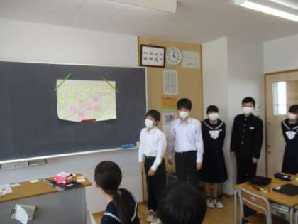 班ごとに作成したマッピングをクラスみんなの前で紹介しています。