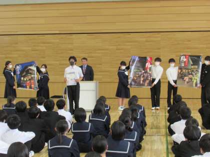 昨年度に引き続き、3年生158名が、越中八尾観光協会会長様から「越中八尾観光大使」に委嘱されました。