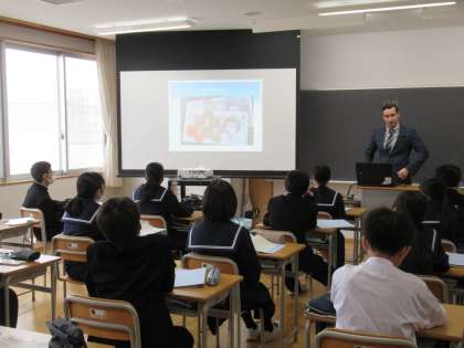 イギリスの紙幣、音楽、、、等様々なクイズを基に、異文化理解をしています。