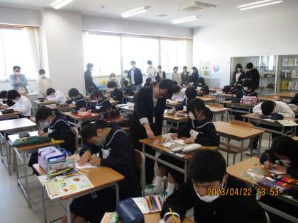 1年1組は技術、1年2組は美術、1年3組は道徳、1年4組は学級活動です。