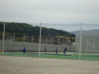 やや肌寒く感じる中、外では女子ソフトテニス部が練習に励んでいます。