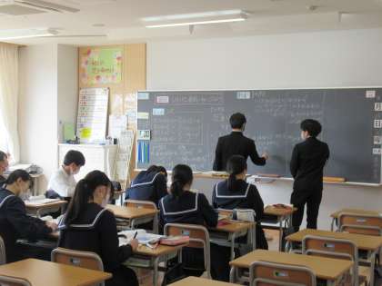 写真下は、数学の授業の様子です。少人数指導にも慣れてきました。