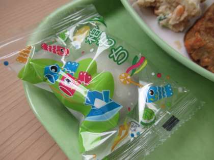 ハンバーグが鯉のぼりの形をしています。柏餅もあります。若竹汁もあります。