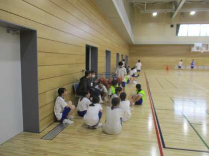 男女バスケットボール部、バドミントン部が、共にゲーム練習を中心に頑張っています。