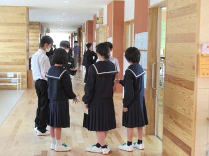 学年生徒会の生徒や学級の班長が1日の打合せをしています。
