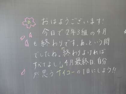 担任の先生からの温かいメッセージが書いてある教室もあります。