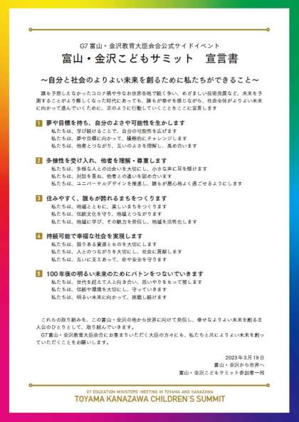 4月28日(金) G7富山・金沢こどもサミット 宣言書