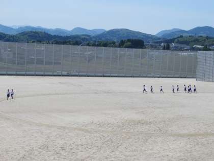 広いグラウンドで1年生がより小さく見えます。