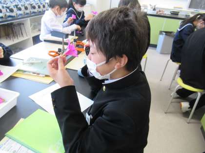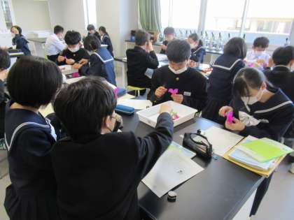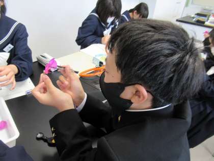 今満開のつつじの花を一人一つずつ受け取り、解体しています。