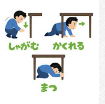 昨年度地震の避難訓練をしましたが、再度思い出し、日頃から防災グッズを準備するなど、備えましょう。