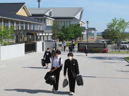 キャリーケースを引かずに手で抱えて登校している生徒もいました。「学校内が汚れたら困るから」とのこと。素晴らしい!!!