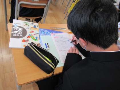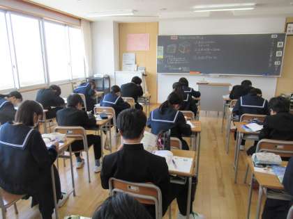 書けた生徒から先生にチェックを受けています。合格できたかな。