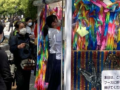 心を込めて折った折鶴を奉納しました。