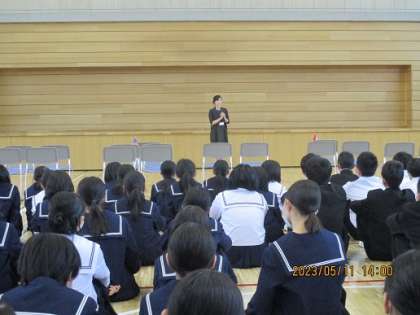 5限に、CSコーディネーターとして赴任された原井紗友里さんの着任式を行いました。