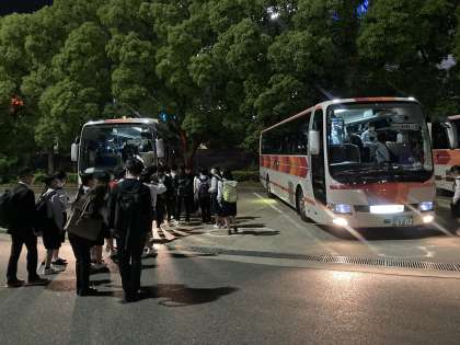 新大阪駅に到着し、バスで宿泊先に向かいます!