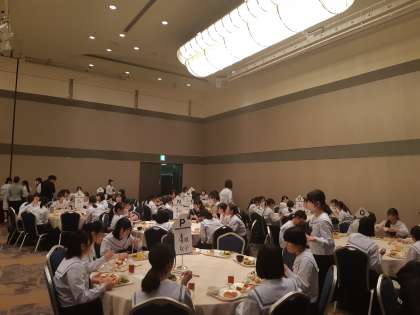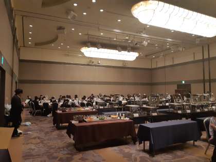 2日目の朝です。朝食会場にみんな集まって来ました。