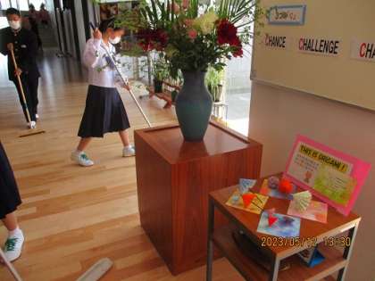 今日はG7教育大臣の訪問日です。生徒は英会話の練習をしたり、飾り付けをしたりと、精一杯「おもてなし」しようと準備を進めてきました。