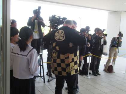 ウエルカムの気持ちを精一杯伝えました。到着されたらウエルカムはっぴをお渡ししました。