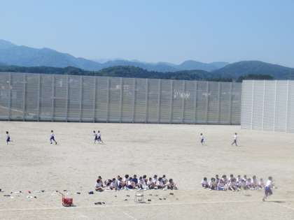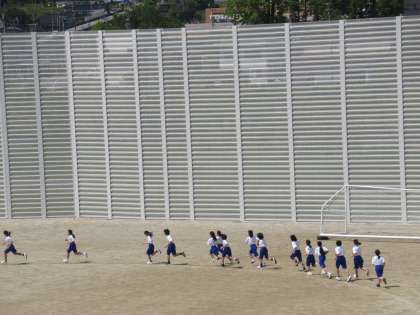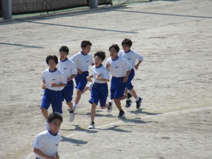 1年生も持久走をしています。 暑い中、頑張っています。