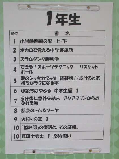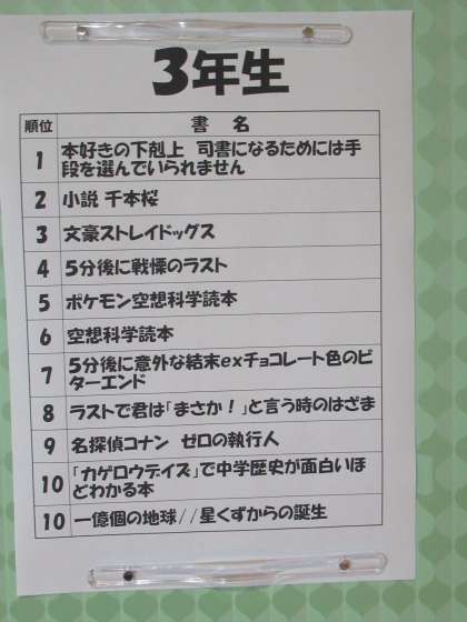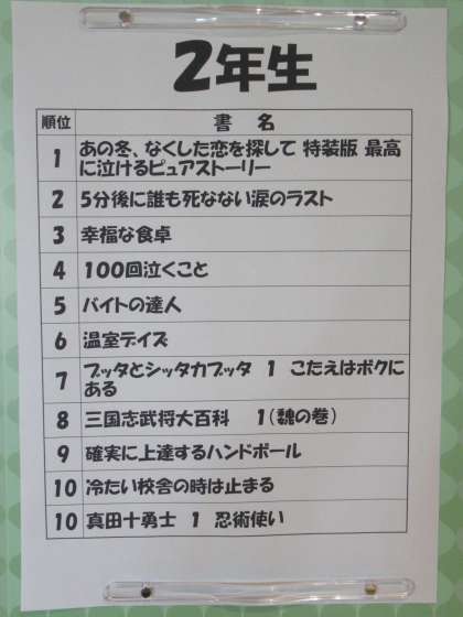 1年生、2年生、3年生とそれぞれ人気の本も異なれば、ランキングも異なりますね。