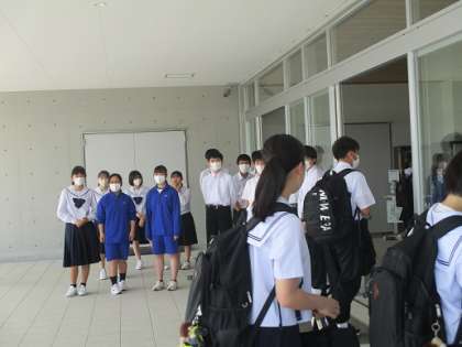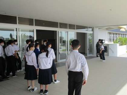 今朝は、3年3組の生徒が、元気な挨拶でみんなを迎えています。