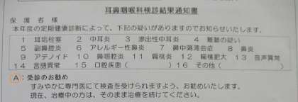 学校医に来校いただき、3年生とあおば組の耳鼻科検診を行いました。