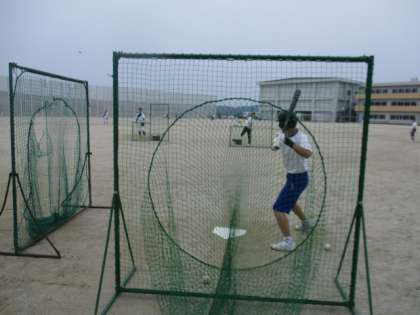 野球部はバッティング練習、サッカー部はパス練習に取り組んでいます。
