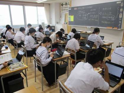 どちらの授業でも、生徒はクロムブックを上手に使いこなしています。