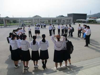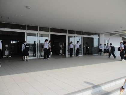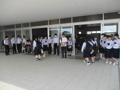 今朝は2年1組の生徒が玄関に立ち、元気な挨拶でみんなを迎えてくれました。