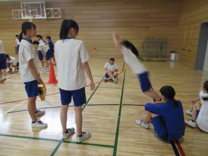 広い体育館は、2クラスが入っても余裕で活動できます。