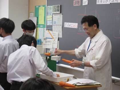 実際に人参をつり合っている点でカットし、重さを量ってみると・・・