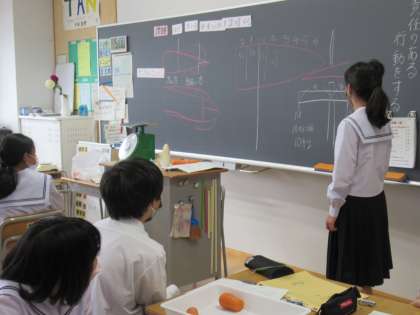 「小学校で、、、、と勉強したから、、、これこれしかじかで、、、」と黒板に図を描いて説明しています。