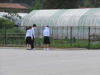 1年生は、教室前でリーダーミーティングを続行中です。