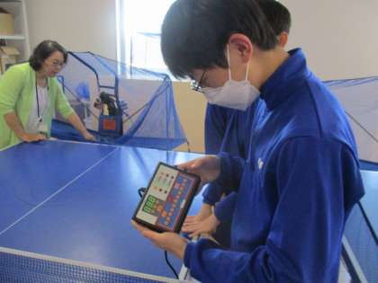 マシーンの調節をしています。基礎練習の強い味方です。