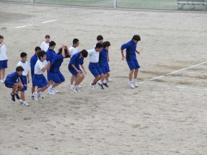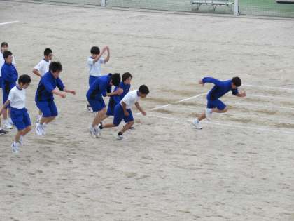 短距離走では、後ろ向きになってスタンバイし、くるっと向きを変えてスタートしたり、10回ジャンプしてからスタートするなど、様々な練習方法を取り入れています。