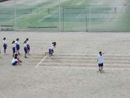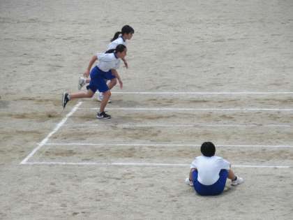 50メートル走の記録を測定中です。