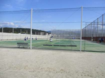 陸上競技部とソフトテニス部の様子です。青空の下気持ちよく活動しています。