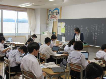 写真下は、道徳の授業の様子です。いじめについて考えています。