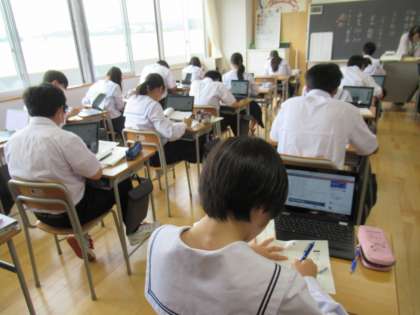 写真上は、社会の授業の様子です。日本では、資源をどのように有効活用しているのかについて学んでいます。