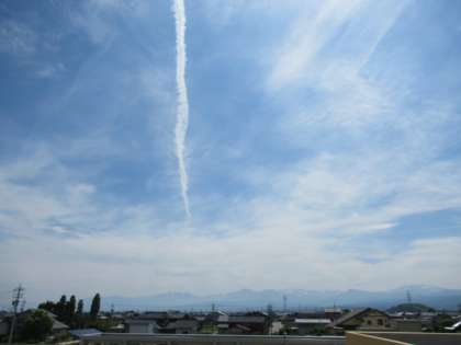 飛行機雲でしょうか?それとも、地震の前兆といわれる地震雲でしょうか。
