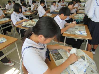 各自が考えた妖怪を身の回りのものを使ってつくります。